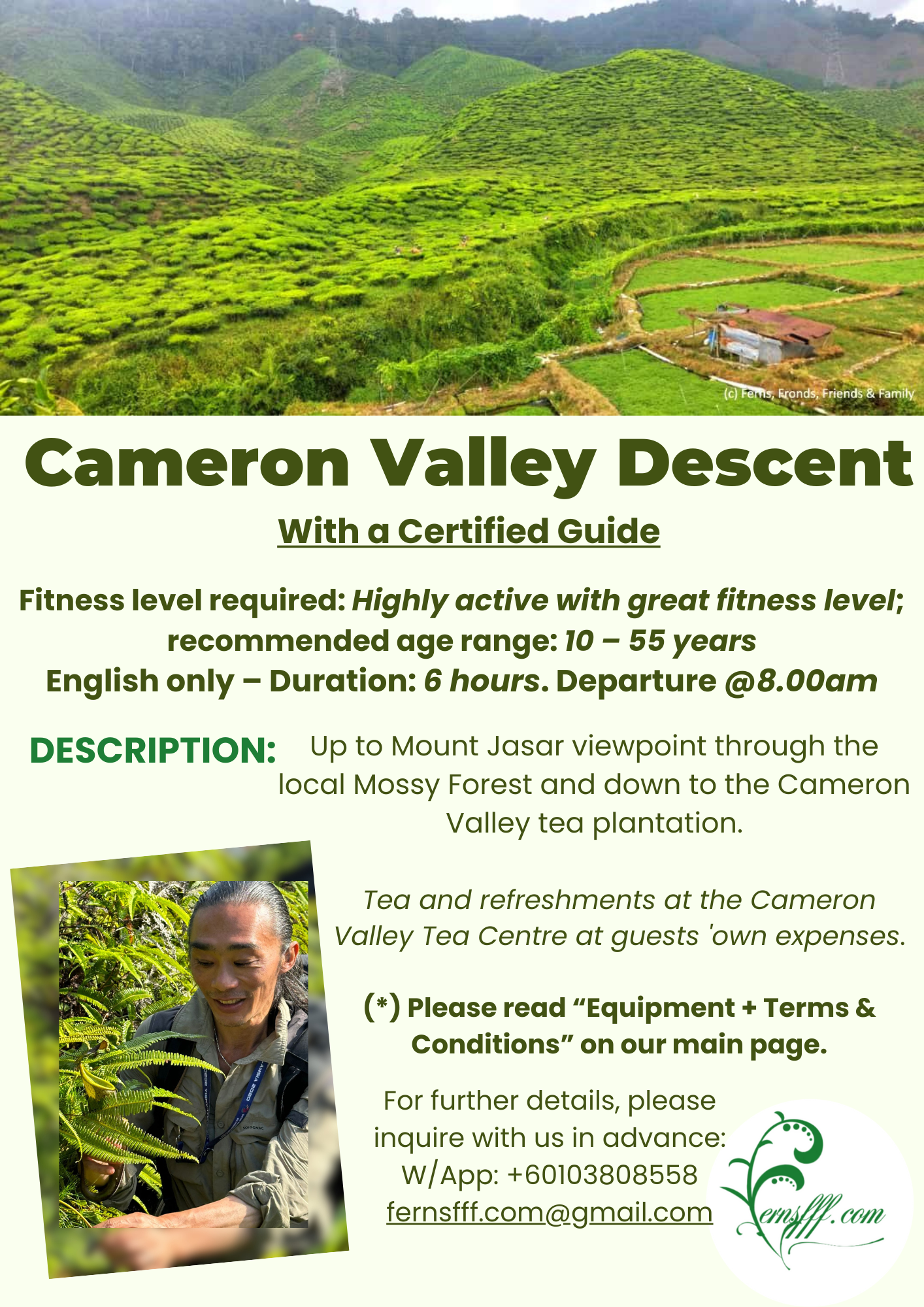 Let us know your wishes and we will personalise your experience in Cameron Highlands (upon availability). =>Private Excursions only