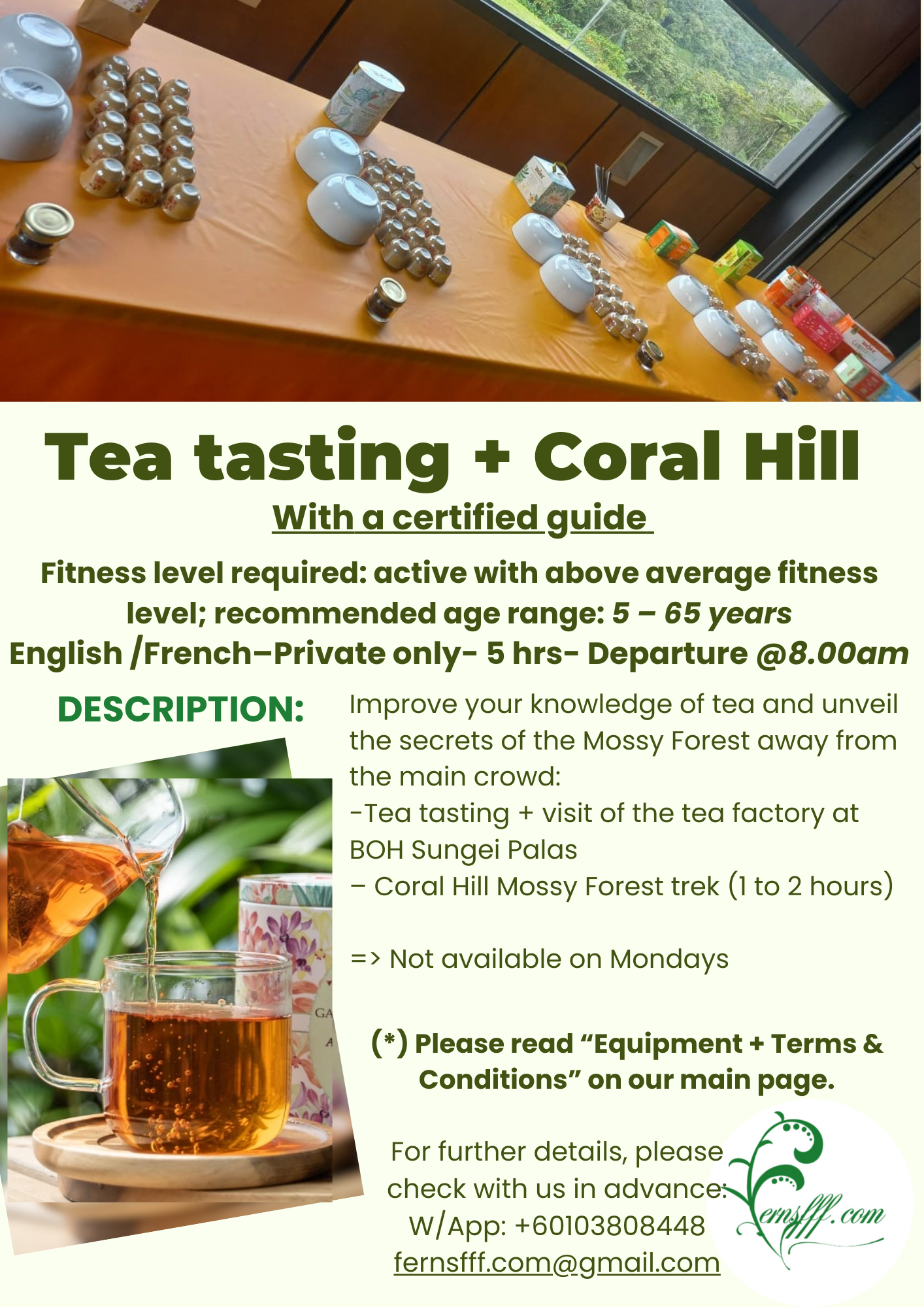 – Tea Tasting at Sungai Palas Tea plantation can be arranged depending on BOH Management availability (Extra charges occur)